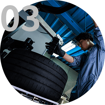 タイヤの交換、バランス調整、空気圧チェック、パンク修理など、タイヤに関する全てのサービスを提供します。適切なタイヤメンテナンスは安全な走行に直結し、燃費効率の向上にも寄与します。お客様のドライブを安全かつ快適に保ちます。